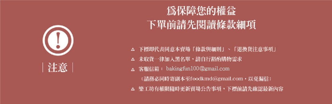 ◍ 客服信箱:bakingfun100@gmail.com ﹝請務必同時寄信至foodkmd@gmail.com,以免漏信﹞