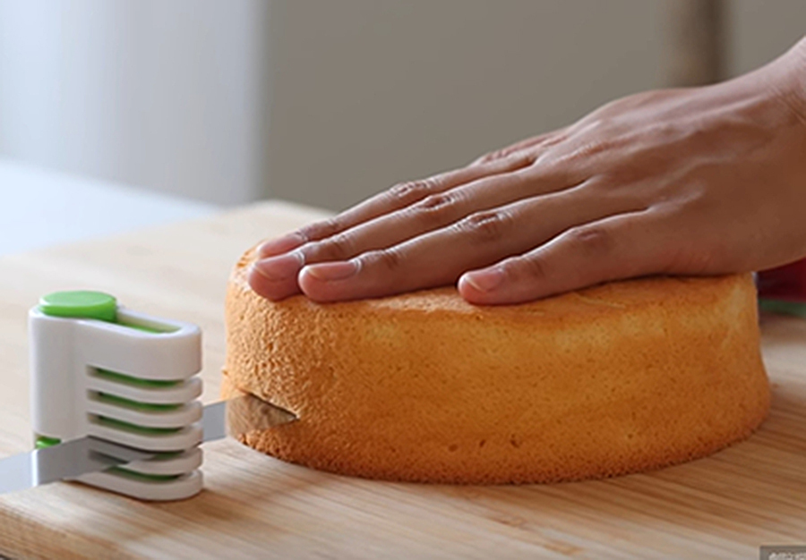 藉由道具的輔助,橫切片蛋糕或麵包可更穩定
